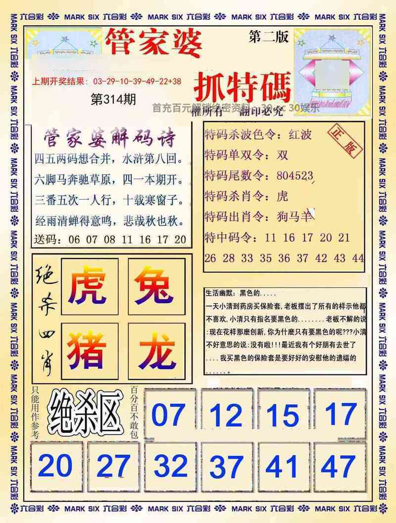 | 315期:绝杀三肖【猴-狗-猪】开:虎04准 |